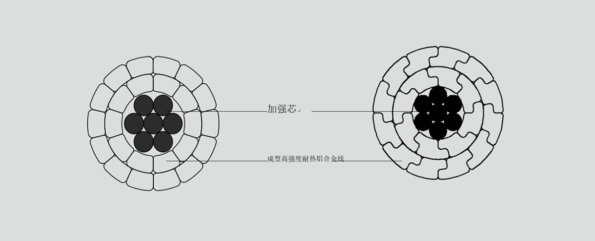 型線結構:使得導線表面光滑,緊密、不易結冰,減小導線外徑。在同樣覆冰厚度的情況下可以減輕導線負荷。同時釆用的高強度耐熱鋁合金型線使得絞線的整體抗拉強度提高很多,從而提高了導線的抗覆冰過裁能力,同時降低了風荷裁。