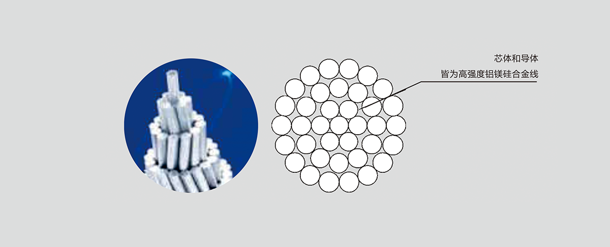 高強度鋁合金單線主要材料成分由電工鋁、鎂、硅等材料合成。它添加的元素主要是鎂(Mg )和硅 (Si),該合金的主要組成物為Mg2Si。在熱處理狀態下,Mg2Si固溶于鋁中,并通過人工時效進行硬化,將硅化鎂Mg2Si均勻地析出在合金單線的表面,使合金單線獲得足夠的強度和塑性。其要點是通過鋁基體的合金化的配方組合,再通過后續的工藝及熱處理過程,使其在導電率、強度、延伸率上得到明顯的提高。